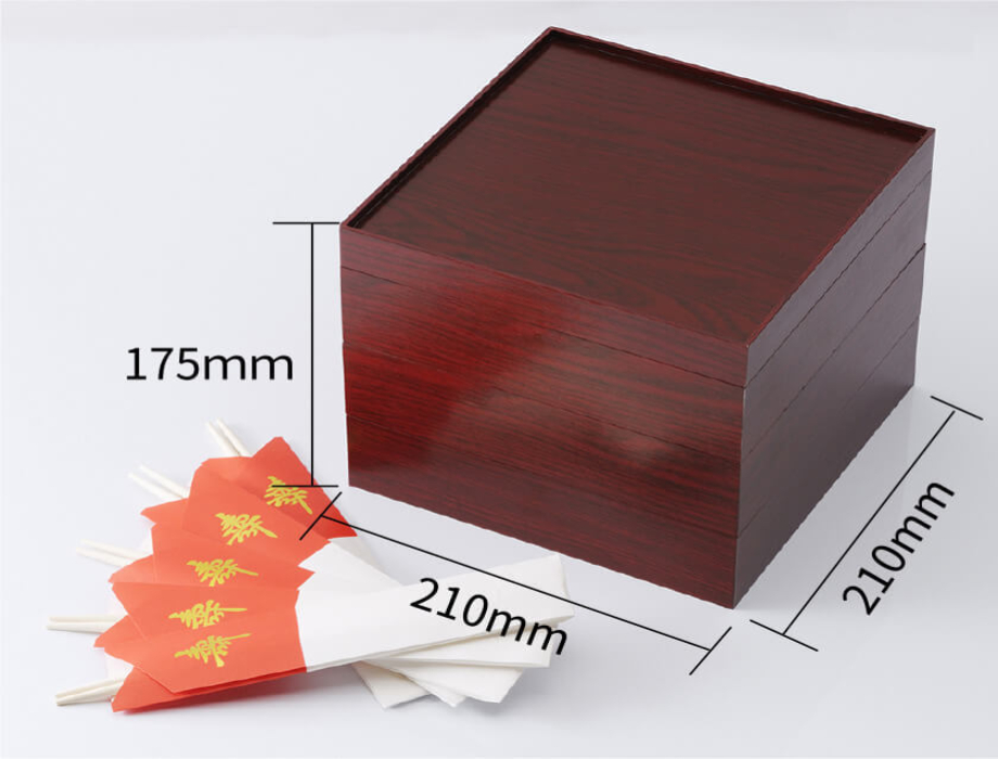 重箱に盛り付けた状態でお届けいたします。