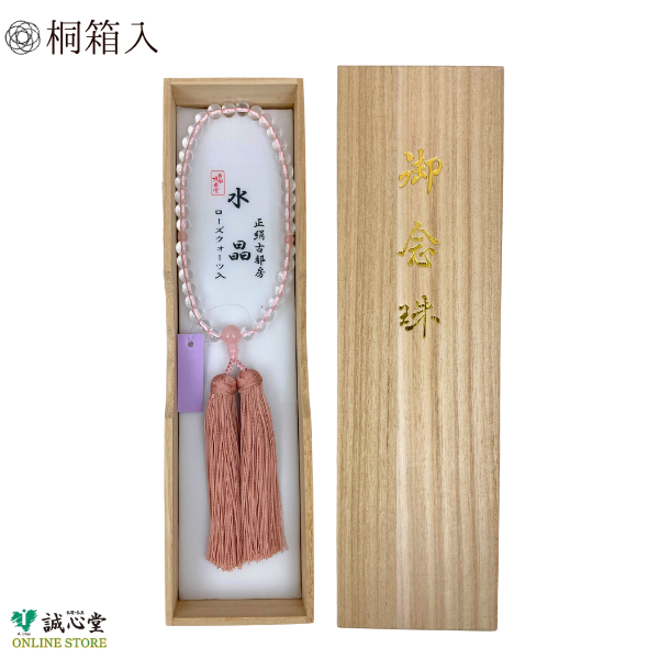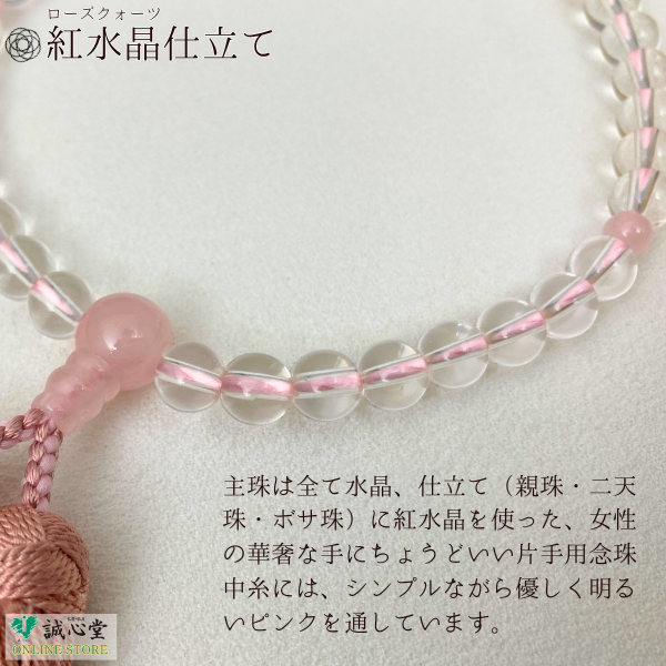 女性用 念珠 数珠 片手 水晶 ローズクォーツ 紅水晶 仕立 古都房 水晶37玉 主玉7mm 石 ピンク 桜色 正絹房 京都 珠香堂 日本製 誠心堂【道内送料無料】