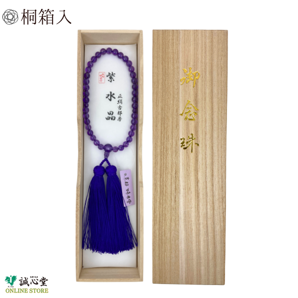 ■女性用 念珠 数珠 片手 紫水晶 アメジスト 古都房 水晶37玉 主玉7mm 石 共仕立 紫 濃い紫 正絹房 京都 珠香堂 日本製 誠心堂【道内送料無料】