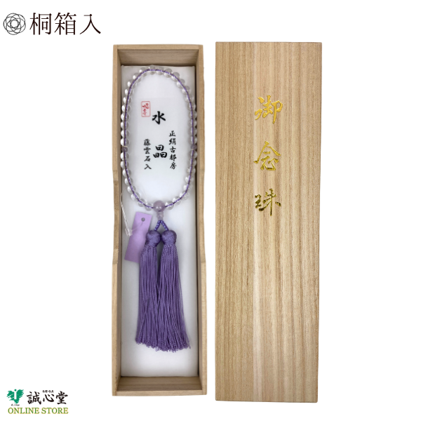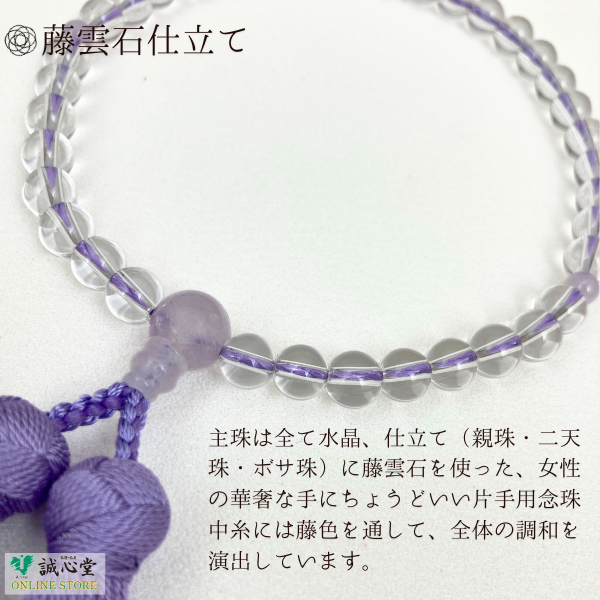 女性用 念珠 数珠 片手 水晶 藤雲石 アメジスト 古都房 37玉 主玉7mm 石 藤色 薄紫 紫水晶 正絹房 京都 珠香堂 日本製 誠心堂【道内送料無料】