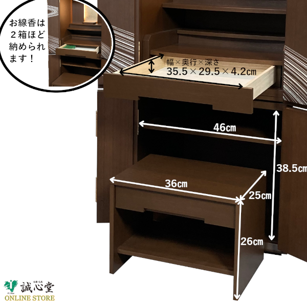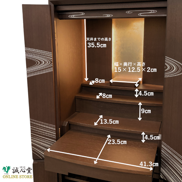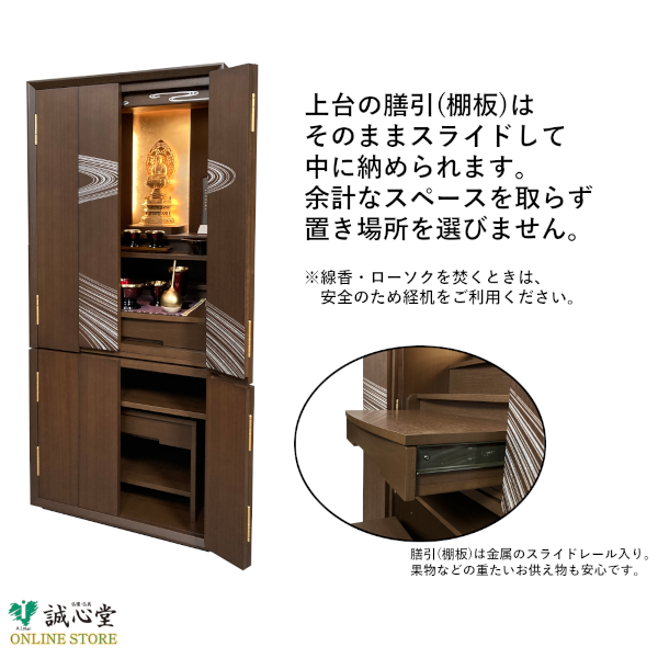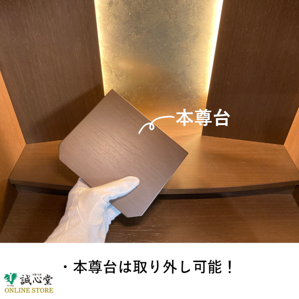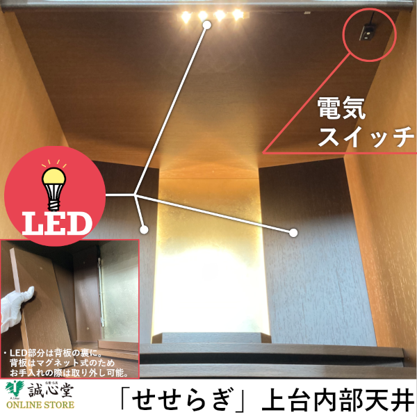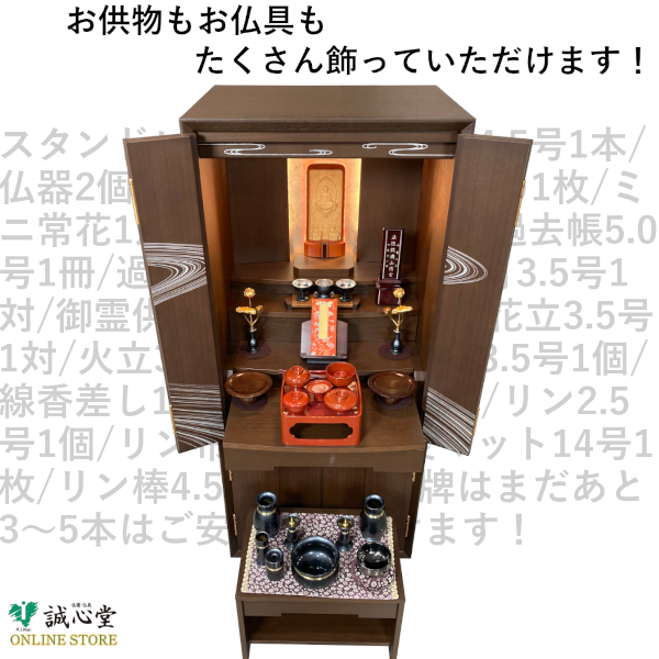 コンパクト仏壇 床置き・台付タイプ 「せせらぎ」17号 高さ50cm ウォールナット アルミ蒔絵 LED照明 誠心堂オリジナル【送料無料】