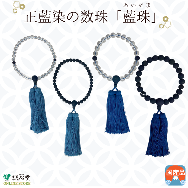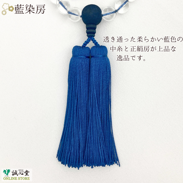男性用 念珠 数珠 藍珠 aidama 藍染 山桜 水晶22玉 主玉12mm 木玉 石 藍 青 濃紺 神戸珠数店オリジナル 日本製 誠心堂【道内送料無料】