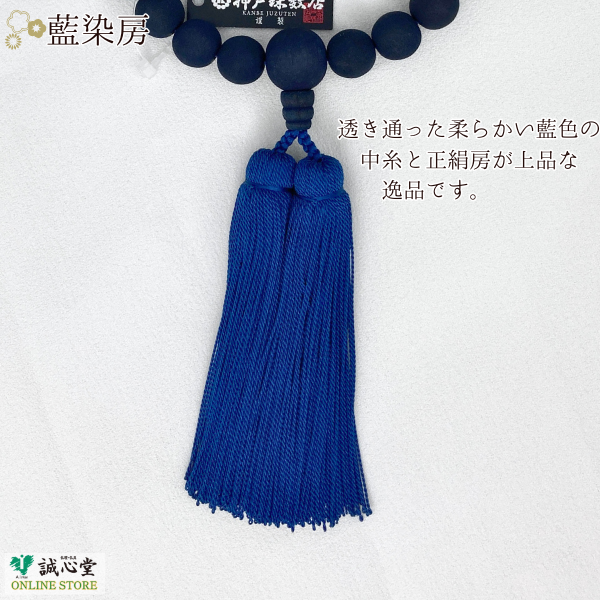 男性用 念珠 数珠 藍珠 aidama 藍染 山桜21玉 主玉12mm 木玉 共仕立 藍 青 濃紺 神戸珠数店オリジナル 日本製 誠心堂【道内送料無料】