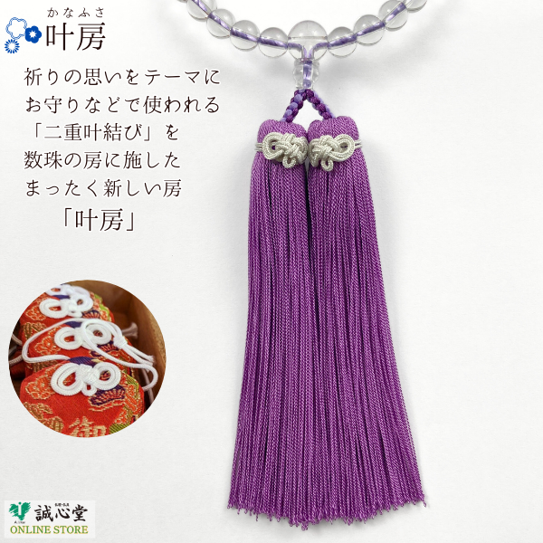房は、祈りの思いをテーマにお守りなどで使われる「二重叶結び」を数珠の房に施した、