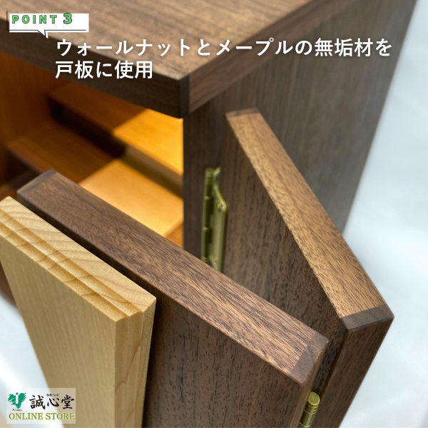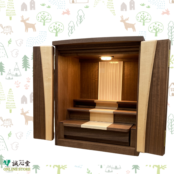 コンパクト ミニ仏壇 国産 モダン「フォレスト」 ウォールナット メープル 16号 高さ50cm以下 上置き・棚上タイプ ウォールナット WAL 日本製 誠心堂オリジナル【送料無料】