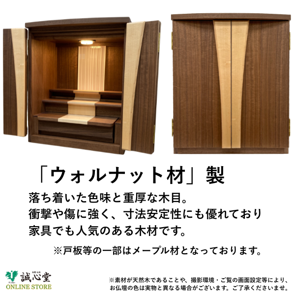 ■コンパクト ミニ仏壇 国産 モダン「フォレスト」 ウォールナット メープル 16号 高さ50cm以下 上置き・棚上タイプ ウォールナット WAL 日本製 誠心堂オリジナル【送料無料】